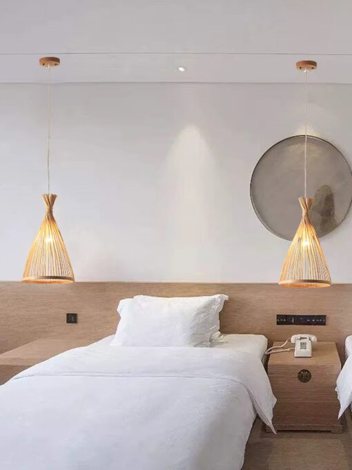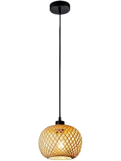 Bring a soft, natural ambiance to your home with this woven bamboo pendant lamp. Its perforated bell-shaped design diffuses elegant light and creates beautiful shades to create a cozy ambiance. Measuring 7.87 x 7.87 x 15.7 inches, this pendant lamp is a decorative piece in itself. Equipped with an E27 socket power cord, it is compatible…