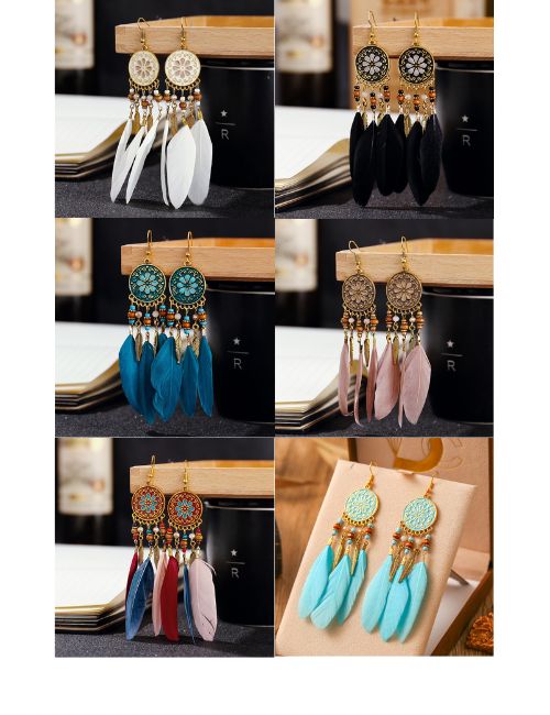 Add a touch of sophistication to your wedding outfit with these gorgeous boho wedding earrings. Carefully crafted, these earrings will enchant you with their delicate design and natural elegance. The combination of lush white feathers and gold embellishments creates a striking contrast that draws the eye and evokes a spirit of freedom and grace. The intricate floral patterns on the central medallion add a dimension of delicacy and detail, while the small pearls and gold metal pendants bring visual harmony and a touch of subtle sparkle.