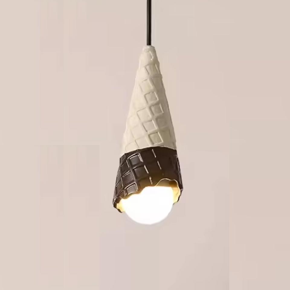 Let yourself be inspired by this ceramic pendant lamp in the shape of an ice cream cone, redesigned in a two-tone version in white and chocolate. Both playful and elegant, it will bring a touch of fantasy to your decor by emitting a warm light.