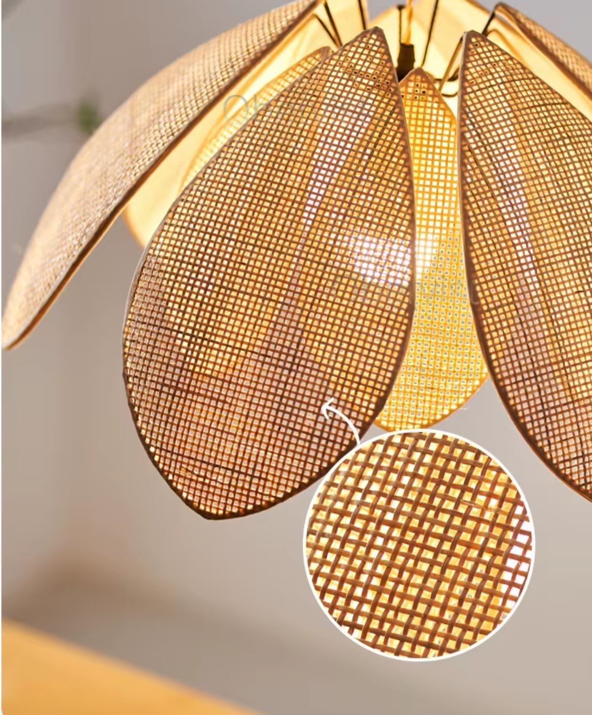 Rattan square mesh petal pendant lamp D22 inches