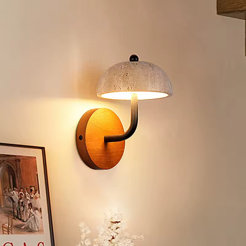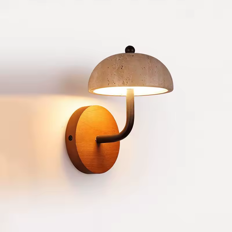 Illuminate your walls elegantly with this travertine and wood wall sconce. Its natural, minimalist design combines the warmth of wood with the unique texture of travertine to create a soft, soothing ambiance.